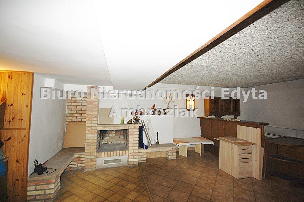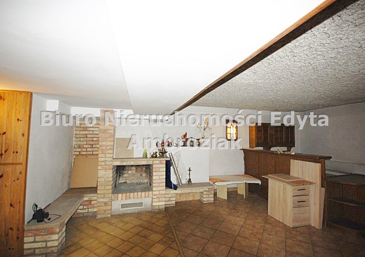 1.Pomieszczenie tzw.piekiełko ok. 77,50 m2 z czynnym kominkiem, podłoga terakota, ściany gipsowane+boazeria, okno pcv